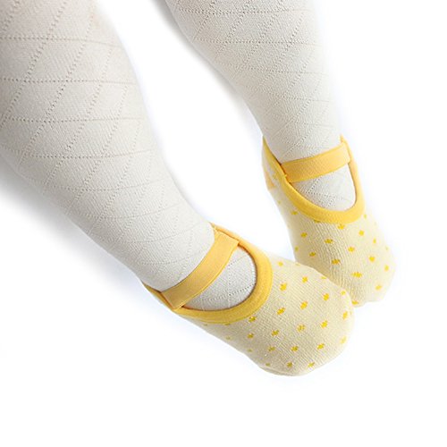 ソックス 靴下 ベビー 幼児用 赤ちゃん キッズ 子供 滑り止め 春夏 コットン ドット (イエロー)