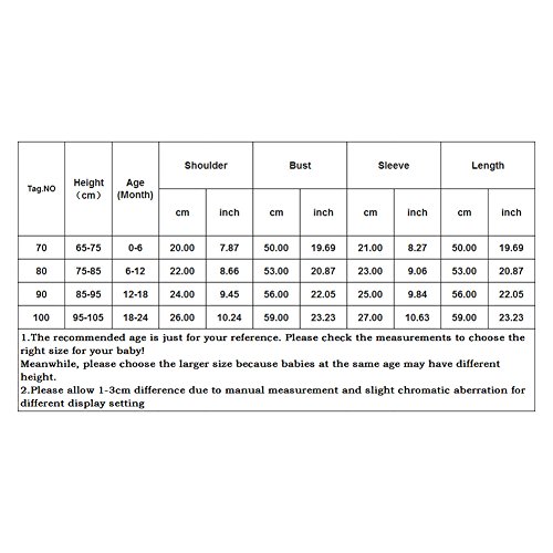 • 90:肩幅24cm、バスト56cm、袖丈25cm、着丈56cm、12~18ヶ月
