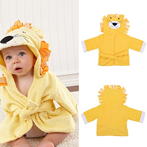 PUERI 子供用バスローブ ベビーバスタオル 赤ちゃん 幼児 タオル生地 お顔と耳付き ライオン 可愛い ベビーシャワーに最適 男女兼用 出産祝い (0-18ヶ月)