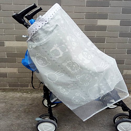 授乳ケープ 授乳カバー コットン 通気性 ガーゼ ベビーカー用 蚊屋 二層 多機能 (グレー)