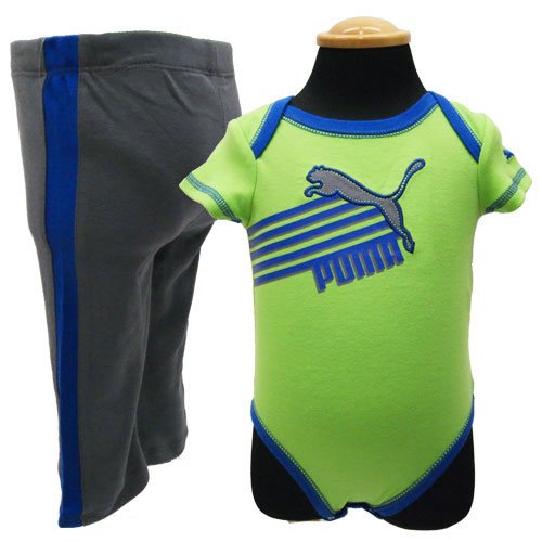 【アメリカ買付商品】 PUMA プーマ ジップアップジャケット ベビー 上下3点セット ジップアップスウエットジャケット、パンツ、ボディースーツの3点セット プレゼントにもオススメ☆ サイズ:3/6ヶ月 6/9ヶ月 カラー:ブルー×グリーン 素材:コットン60%ポリエステル40% 洗濯表示:洗濯機可(※商品付属の洗濯表示をご覧ください。) 輸入国:アメリカ 生産国:中国