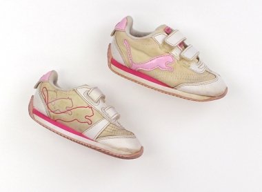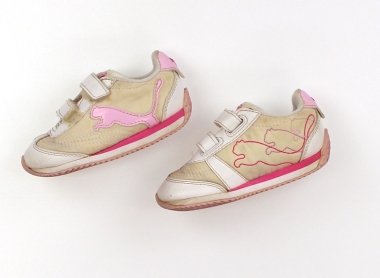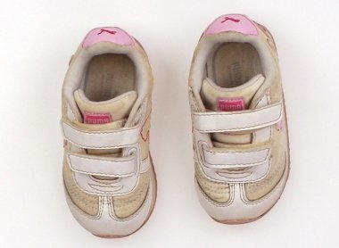- 実際のサイズ表記は13cmです。全体的に黄ばみや変色をしております。靴底のすり減り具合は少ないほうですので、まだまだ走り回っていただけそうです。