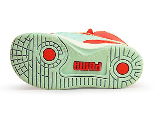 プーマのコートスタイル系スニーカーのハイカットシルエットをベースに、トムとジェリーのキャラクターがキュートなベルクロストラップ仕様を採用した着脱にも便利なデザインです。