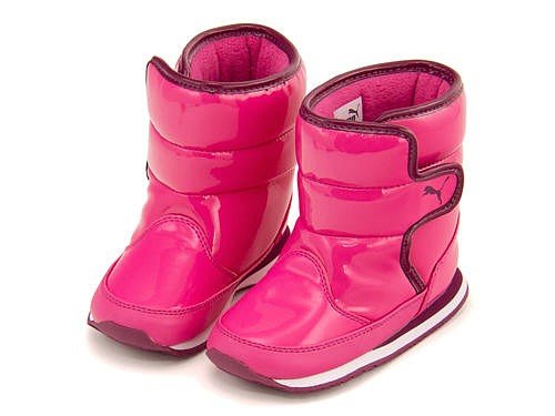 ウィンターブーツのシルエットからインスパイアされた、ベビー用カジュアルブーツ☆ 艶のあるエナメルアッパーに、ヒールやストラップにプーマキャットでアクセントをつけ、スポーティなテイストに仕上げています♪ サイドにストラップを設けて、脱ぎ履きをスムーズにアシスト!取り外し可能なインソールには、適正サイズがデザインされ、サイズ変更の目安が目で見て分かる嬉しい機能付き!ライニングには、フカフカで柔らかなクッションを使用し、足元をふんわりと包み暖かくしてくれます◎ 寒くなるこれからの季節にオススメのアイテムです!※展開サイズ:キッズ