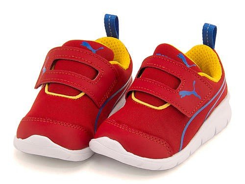 柔らかさとしなやかさが魅力のベビーシューズ。アッパーはソフトな肌触りのネオプレーン調素材を使用し、足に優しくフィット♪ ワンタッチで履ける太めの1本ストラップの履き口は、大きく開くので小さなお子さまでも簡単に脱ぎ履きできます。また、カカトにはプルストラップを付けて、着脱をアシスト!ソールはフレックス性のある設計で屈曲に優れ、歩き始めの赤ちゃんの歩行に合わせてしっかりと対応します◎ 中敷を取り外し、足型を合わせて適正サイズがわかる「キンダーフィットインソール」を搭載♪ 靴のサイズ替えの時期が、一目でわかるようになっています♪ 発色の良いカラーリングに、プーマキャットがアクセントになった可愛いデザイン☆ 片足約60g(14cm)の超軽量設計です♪※展開サイズ:キッズ