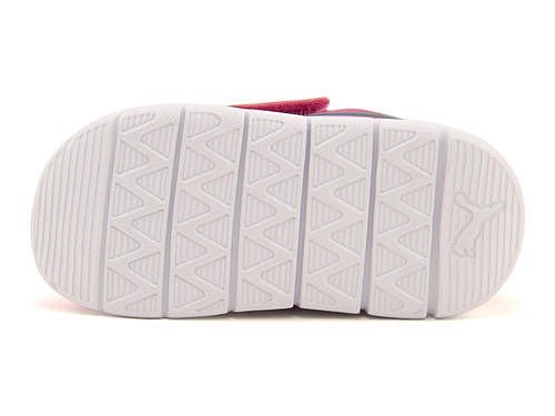 柔らかさとしなやかさが魅力のベビーシューズ。アッパーはソフトな肌触りのネオプレーン調素材を使用し、足に優しくフィット♪ ワンタッチで履ける太めの1本ストラップの履き口は、大きく開くので小さなお子さまでも簡単に脱ぎ履きできます。また、カカトにはプルストラップを付けて、着脱をアシスト!ソールはフレックス性のある設計で屈曲に優れ、歩き始めの赤ちゃんの歩行に合わせてしっかりと対応します◎ 中敷を取り外し、足型を合わせて適正サイズがわかる「キンダーフィットインソール」を搭載♪ 靴のサイズ替えの時期が、一目でわかるようになっています♪ 発色の良いカラーリングに、プーマキャットがアクセントになった可愛いデザイン☆ 片足約60g(14cm)の超軽量設計です♪※展開サイズ:キッズ