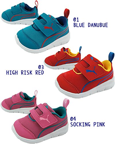 プーマ 189765 ベビー キッズ ベルクロ スニーカー ■商品説明 01 ブルードナウ 03 ハイリスクレッド 04 ショッキングピンク フレックス性のあるソールに、スリップオンタイプのアッパーをハイブリッドした1足。 PUMAのキャットロゴとサイドのフォームストライプラインがアクセントに。 かかとに付いたプルタブと大きく開くベルクロで、履かせるときも、お子様自身で履くときも脱ぎ履きしやすい形です。 取り外せるインソールにはサイズ目安ゾーンが書かれているので買い替えの時期も一目でわかります。 ■素材 合成繊維+人工皮革、合成樹脂(モールデッドEVA樹脂)、ゴム底