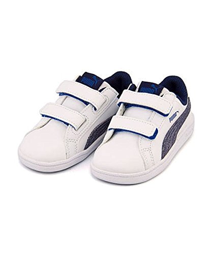 [プーマ] PUMA 女の子 男の子 キッズ ベビー 子供靴 運動靴 通学靴 ベビーシューズ スニーカー スマッシュ デニム 2 V インファント ストラップ SMASH DENIM 2 V INF 363996 プーマホワイト/ブルーデプス 16.0cm