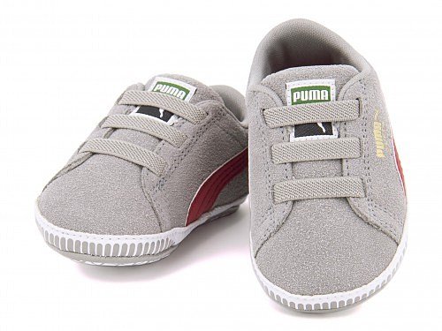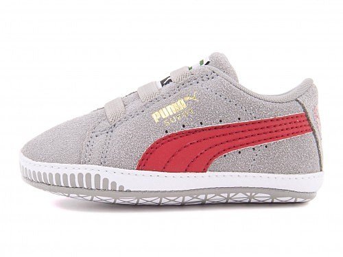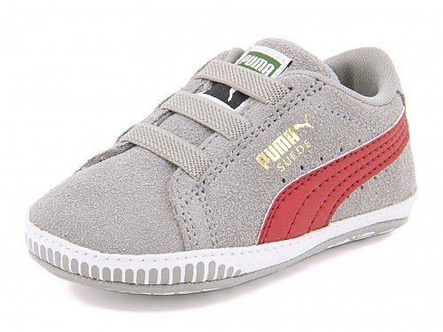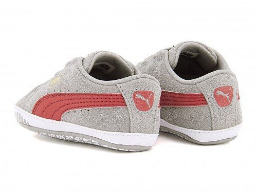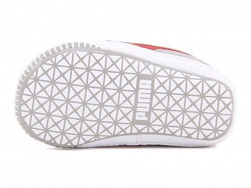 PUMA ライフスタイルコレクションより、スウェードクリブです。プーマのアイコニックなスニーカーSUEDE(スウェード)を、赤ちゃん用のクリブシューズとしてデザインしたアイテム。まるで本物の大人モデルのようなデザインがキュート!赤ちゃんの足を優しく包み込む柔らかな素材で仕上げられており、靴底は滑り止めを兼ね備えたゴムプリントが施されています。 インソールを取り外し、足型を合わせて適正サイズが一目でわかるキンダーフィットシステム採用モデル。履き口はゴムで伸び縮みする仕様なので、着脱しやすいのもうれしいポイント。パパやママとお揃いでぜひそろえていただきたいキュートなアイテム。おうちであんよを練習し始めた赤ちゃんにピッタリ!パッケージもプレゼントにオススメのデザインで、ファーストシューズとして贈り物にもオススメです。※展開サイズ:キッズ