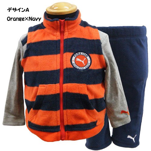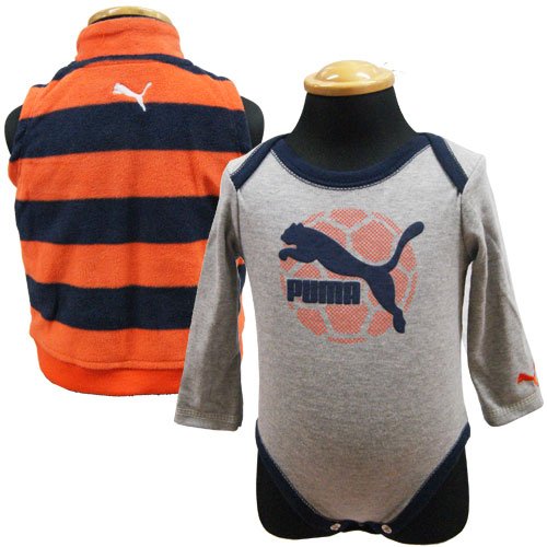 PUMA プーマ ベビー服 ベビーセット フリース ボディスーツ ベスト フリースパンツ -デザインA65~70cm