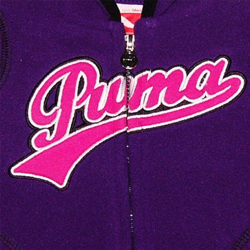 PUMA(プーマ)女の子用パープルフリースロゴジップアップフード付きジャケット&ブラックフリースパンツ上下2点セット 12months 12ヶ月用 80cm セットアップ,ジャージ上下セット,パーカージャケット,【並行輸入】