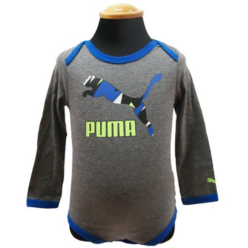 【アメリカ買付商品】 PUMA プーマ ベビー ベビー服 ベビー下着 長袖ボディスーツ 3枚セット かっこいい長袖ボディースーツ3枚セット ネック部分が大きく肩まで開くのでお着替えも楽ちん ギフトにも大人気の商品です☆ サイズ:3/6ヶ月=約61~67cm 6/9ヶ月=約67~72cm カラー:グレー×ブルー 素材:コットン60% ポリエステル40% 洗濯表示:洗濯機可 輸入国:アメリカ 生産国:中国