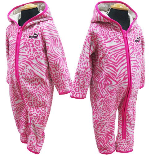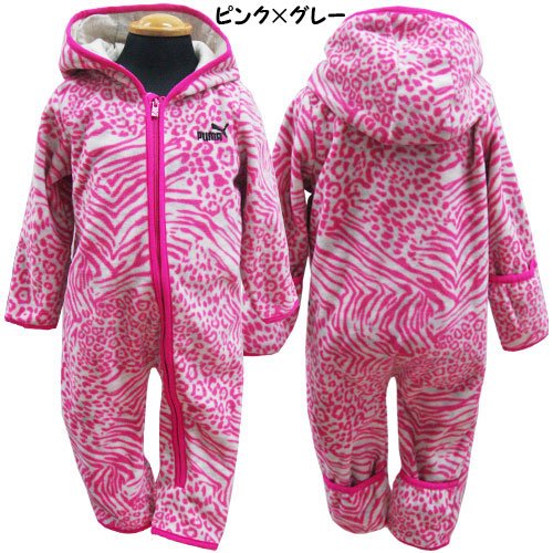 PUMA プーマ ベビー フリース カバーオール オールインワン - ピンク×グレー/0/3M=60~65cm