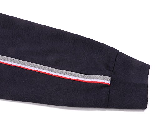 フェイクレイヤードデザインになっていて、袖はライン入りで、袖口はリブになっています。