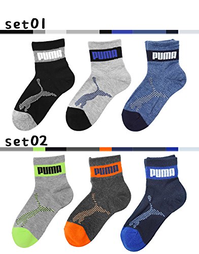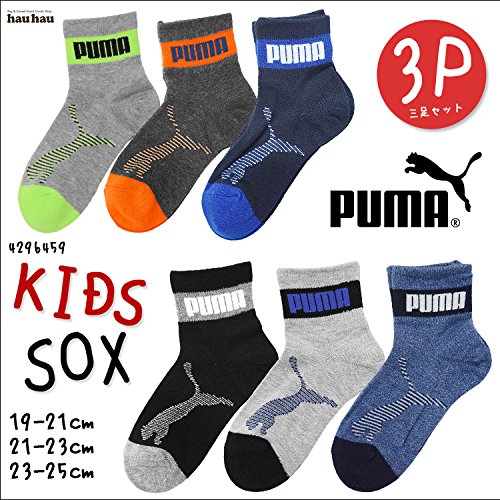 [プーマ] PUMA 靴下 キッズ 三足組 セット 男の子 子供用 ソックス ジュニア 小学生 中学生 ショートソックス クルー 足首