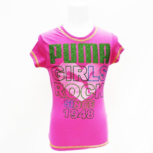 PUMA プーマ ガーイズ ロゴキラキラTシャツ ピンク