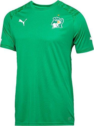 DRYCELLジャージーPUMA Catフロント、袖にはロゴ刺繍付き。コートジボワールのフェデレーションチームの紋章は前面に縫製。100%ポリエステル。