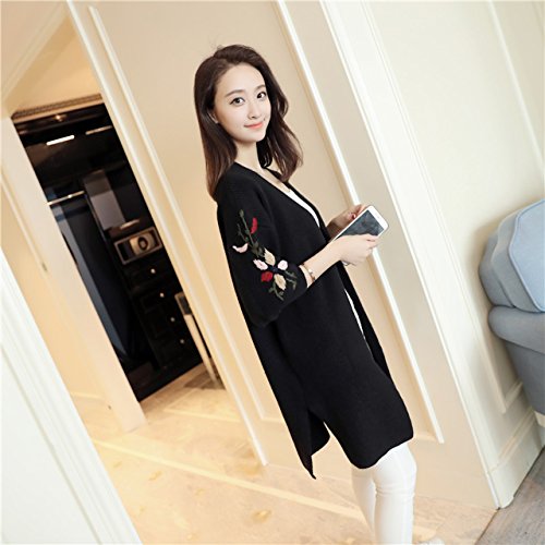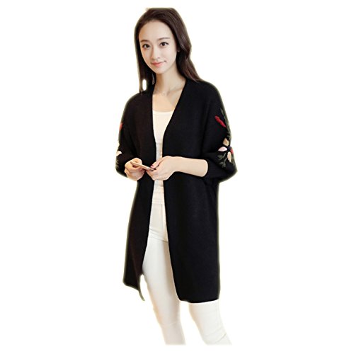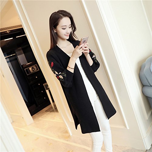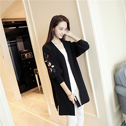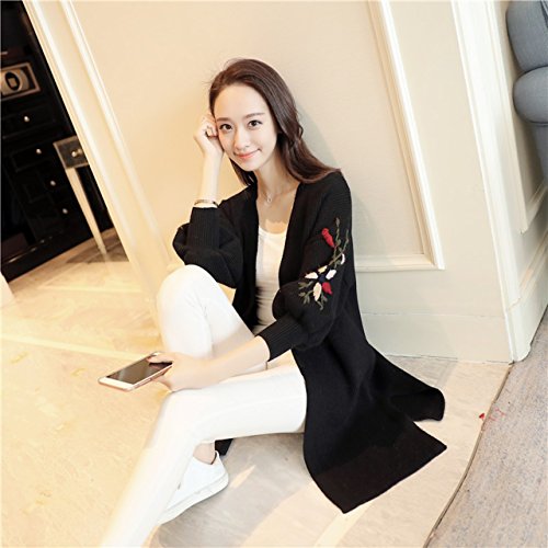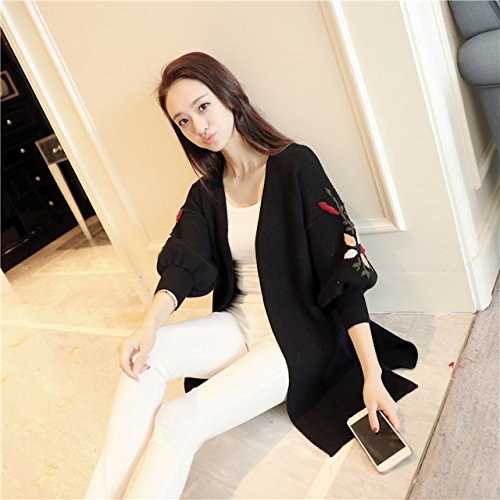 - 花柄刺繍を施したロング丈ニットカーディガン。今大人気の花柄刺繍が袖に施されており、今年らしい着こなしをお楽しみ頂けます。袖はゆったりとしたボリューム袖になっており、着心地はとっても楽チンで、ナチュラル可愛い雰囲気に。