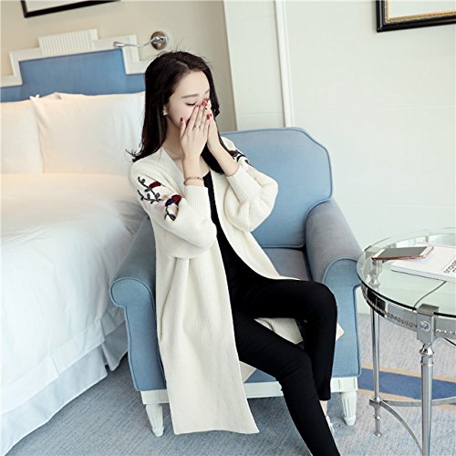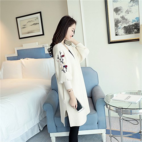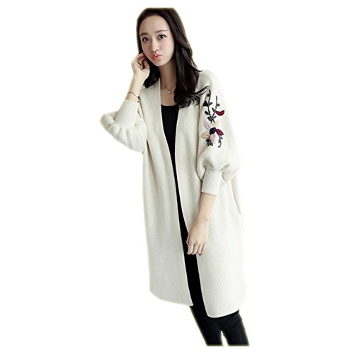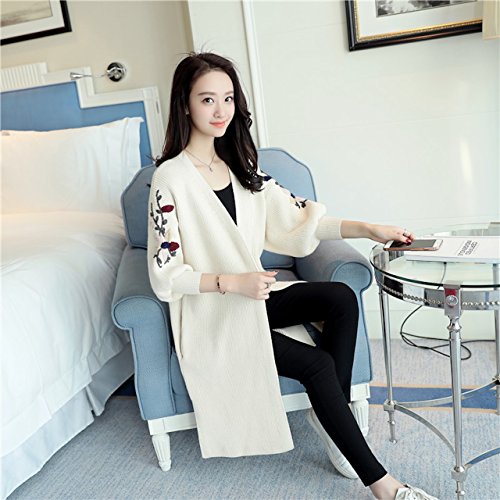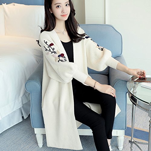 - 花柄刺繍を施したロング丈ニットカーディガン。今大人気の花柄刺繍が袖に施されており、今年らしい着こなしをお楽しみ頂けます。袖はゆったりとしたボリューム袖になっており、着心地はとっても楽チンで、ナチュラル可愛い雰囲気に。