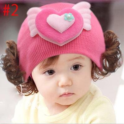 可愛い天使 赤ちゃん帽子ベビー帽子 キャップ キッズ 子供ハット かつら ウィッグ 付き 新生児 女の子帽子 (#2)