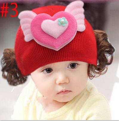 可愛い天使 赤ちゃん帽子ベビー帽子 キャップ キッズ 子供ハット かつら ウィッグ 付き 新生児 女の子帽子 (#3)