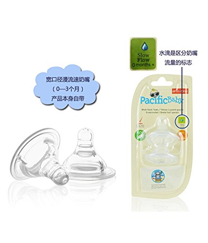 Pacific Baby Wide Neck Teats, Slow Flow, 2-Count by Pacific Baby