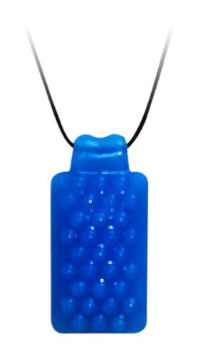 The socially appropriate Textured Chewable Necklaces by Sensory Junction are an excellent alternative for kids who chew on their clothing or pencils. One side has small bumps which are great for oral stimulation and the other side has fine ridges that mimic the texture of a child's shirt collar. Each necklace is constructed of a medical grade chewy resilient material and is Free of paints, lead, latex, PVC, BPA and phthalates. Material and colors are FDA approved. Sensory input is provided for the lips, gums, and tongue through the textured sides. The Textured Chewable Necklaces by Sensory Junction is a practical and convenient oral motor fidget that aids in chewing, self-regulation and jaw muscle strengthening. Each necklace comes with an 18" Safety Lanyard with instruction for cutting to size. Not recommended for aggressive chewers! Use under adult supervision at all times. Inspection is recommended before each use and replace when showing signs of excessive wear. Dimension of pendent: 2" long x 1.25" wide x 5/16" thick