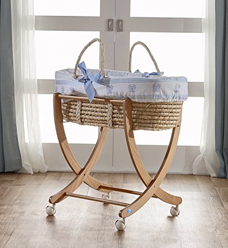 Suggested for use with babies up to 8 weeks;Never move a Moses basket with baby inside;Select your bedding and stand colors;100% cotton next to baby; fleece backing;Includes coordinating blanket