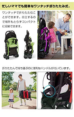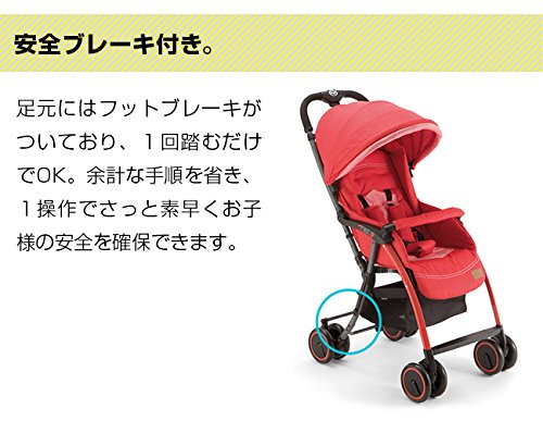- イタリア生まれの折りたたみ式ベビーカーです。シートはお子様にあった角度を無段階に調節できるリクライニング付きで、背もたれを倒し、座面のフットレストを上げれば、生後1か月の赤ちゃんでもお使いいただけます。ダブルタイヤを採用しており、安定した走行を実現しています。足元には1回踏むだけのフットブレーキがついています。折りたたみ時はそのまま自立するので収納する場所をとりません。