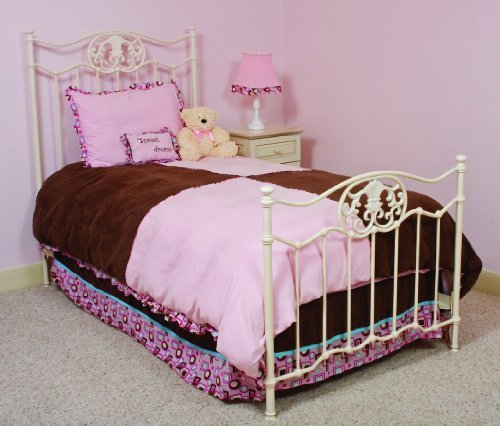 Soft pink and rich brown make this groovy bedding set a sure favorite. This 3 piece set is machine washable and includes a duvet cover, pillow sham and bed skirt.