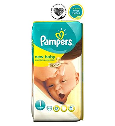 - Pampers New Baby Nappies Size 1 Essential Pack - 45 Nappies (Pack of 6)