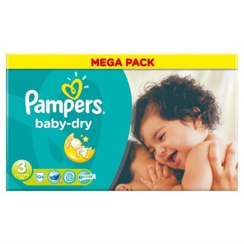 Pampers Baby Dry Nappies Size 3 Mega Pack 104 Nappies