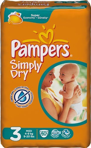 - Pampers Simply Dry Size 3 (Midi) Economy 2 x Packs 60 Nappies--120 Nappies