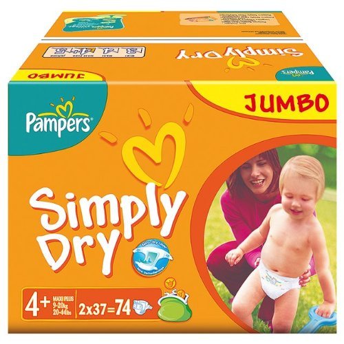 Pampers Simply Dry Size 4+ (9-20kg) Jumbo Pack74 per pack by Pampers