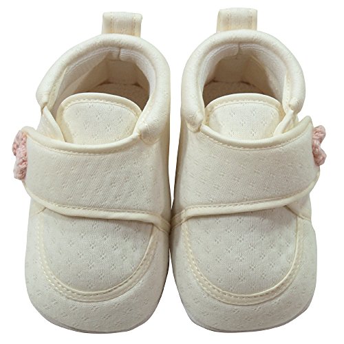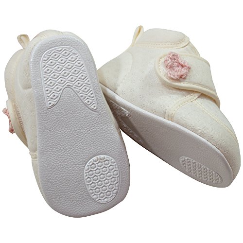《オールシーズン》(日本製) Pample Mousse(パンプルムース) 花モチーフ付ファーストシューズ 12.5cm/IV NO.DP-71601