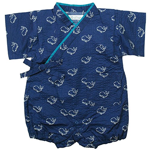 《初夏盛夏対応》(日本製) Pample Mousse(パンプルムース) くじら柄甚平ロンパス 80cm/NB NO.DP-72465