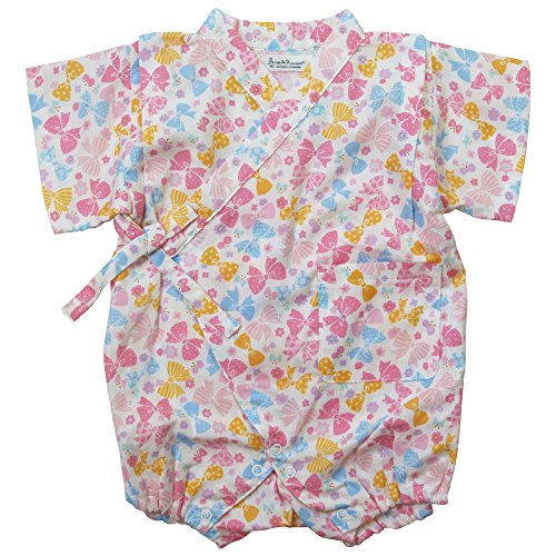 《初夏盛夏対応》(日本製) Pample Mousse(パンプルムース) リボン柄甚平ロンパス 70cm /OW NO.DP-72463
