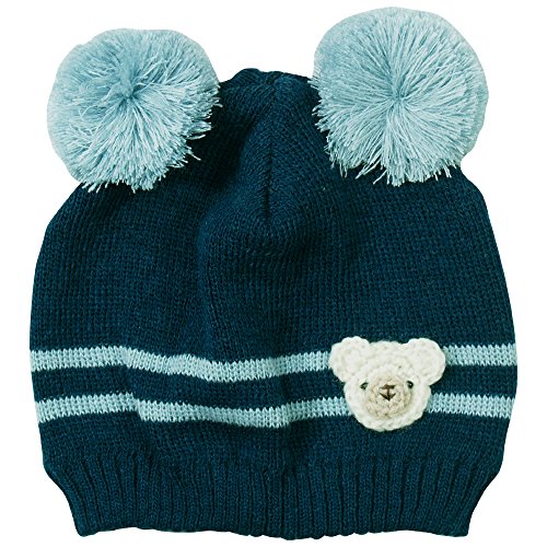 《H28年秋冬物》(日本製) Pample Mousse(パンプルムース) 梵天編みぐるみ付きニット帽子 44cm~50cm/BL NO.DP-63606