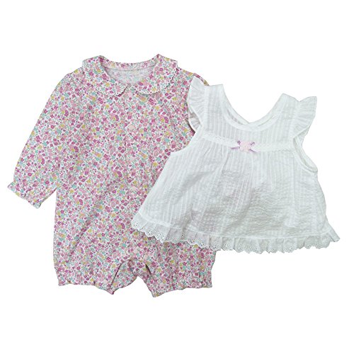 【H28年春物】(日本製) Pample Mousse(パンプルムース) 編み花付きセットロンパース 60cm/OW NO.DP-61512