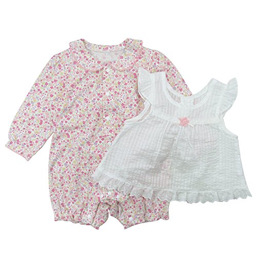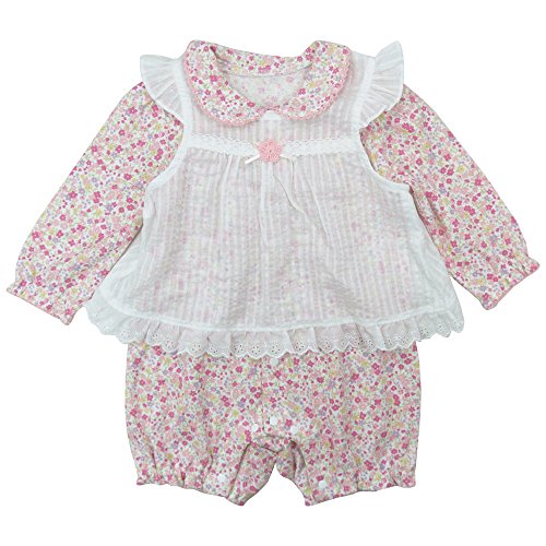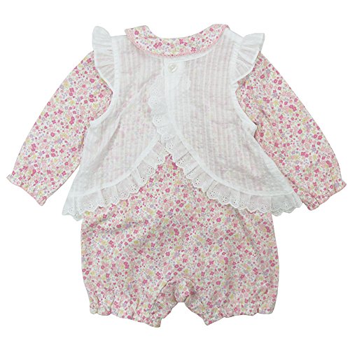 【春物】(日本製) Pample Mousse(パンプルムース) 編み花付きセットロンパース 60cm /PK NO.DP-61512
