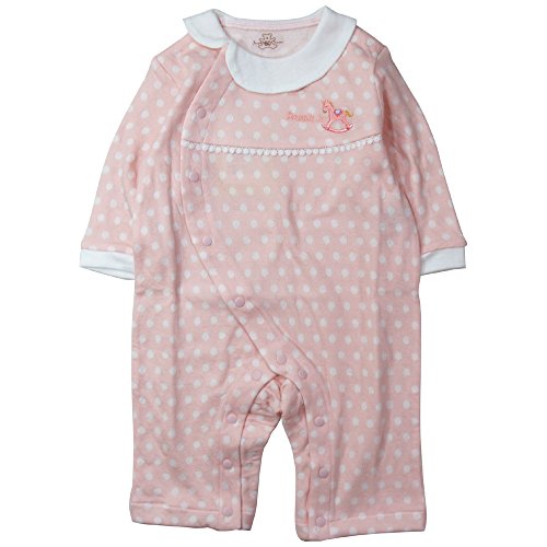 《H29年春物》(日本製) Pample Mousse(パンプルムース) 水玉接結木馬刺繡襟付きカバーオール 70cm /PK NO.DP-71506