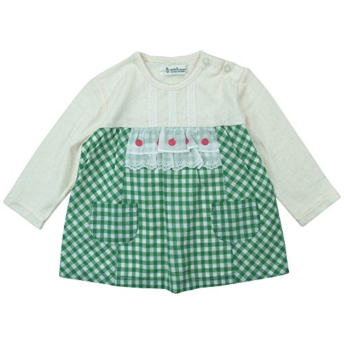 【H28年春物】(日本製) Pample Mousse(パンプルムース) 綿麻ギンガム刺繍フリル付きトレーナー 90cm/GR NO.DP-61217