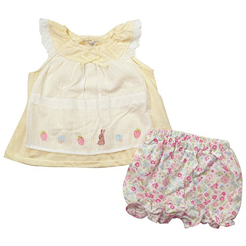 《初夏盛夏対応》(日本製) Pample Mousse(パンプルムース) ジャガード天竺&布帛ローンストライプエプロン風ミルキースーツ 80cm /CR NO.DP-72408