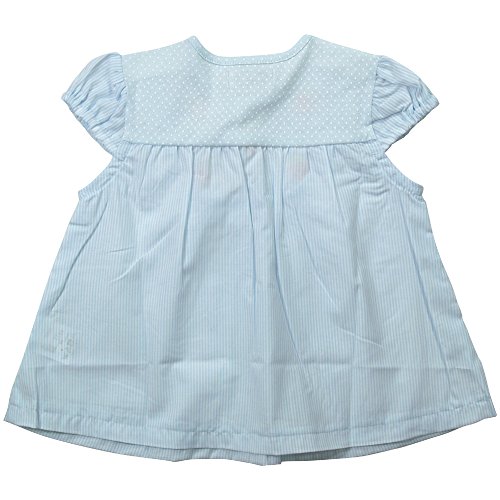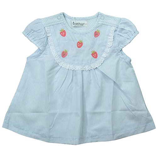 《初夏盛夏対応》(日本製) Pample Mousse(パンプルムース) 布帛ローンストライプ&ニット水玉いちご刺繍半袖オーバーブラウス 80cm /SA NO.DP-72255
