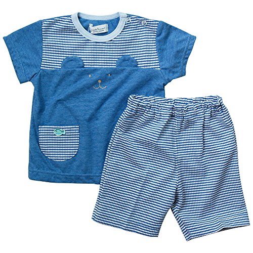 《初夏盛夏対応》(日本製) Pample Mousse(パンプルムース) 杢天竺&ジャガードボーダー耳付き半袖Tスーツ 90cm /BL NO.DP-72556