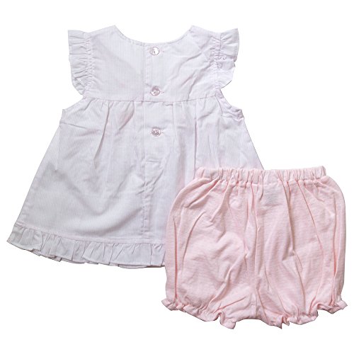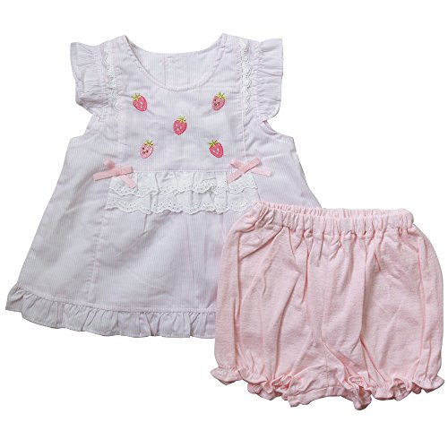 《初夏盛夏対応》(日本製) Pample Mousse(パンプルムース) 先染80ローンストライプいちご刺繍フリル袖ミルキースーツ 80cm /PK NO.DP-72456