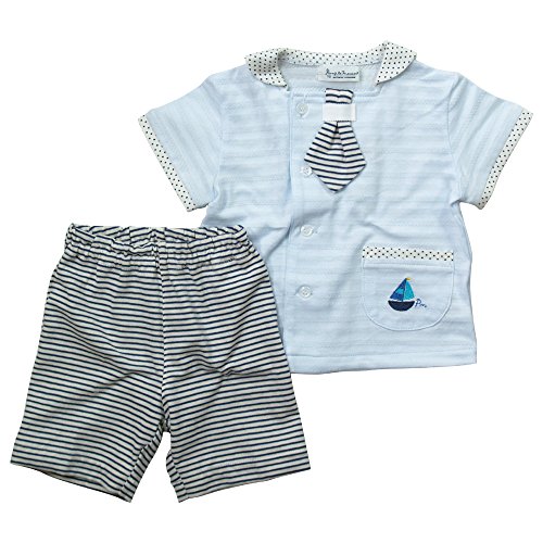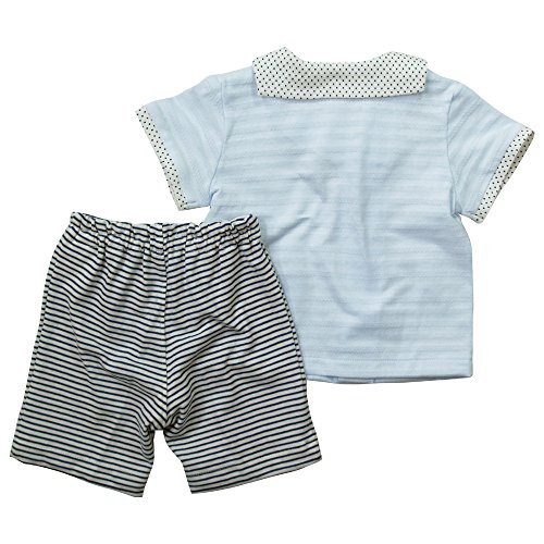 《初夏盛夏対応》(日本製) Pample Mousse(パンプルムース) 上衣天竺ジャガードボーダー柄+天竺ボーダー柄五分丈パンツセーラースーツ 80cm /SA NO.DP-72509