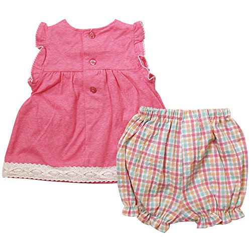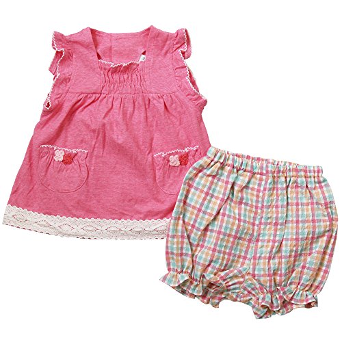 《初夏盛夏対応》(日本製) Pample Mousse(パンプルムース) 上衣杢天竺花モチーフ付き&パンツギンガム格子ブルマミルキースーツ 80cm /RP NO.DP-72453