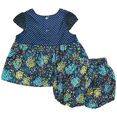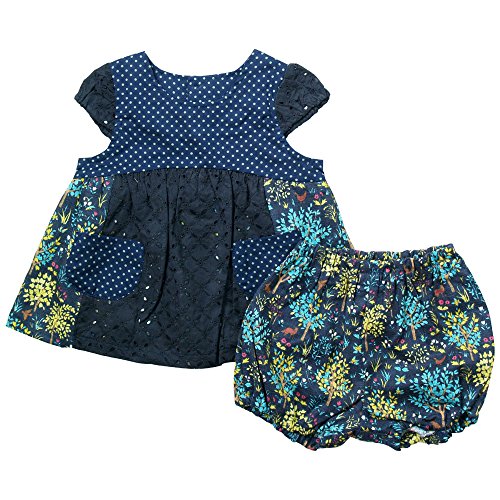 《初夏盛夏対応》(日本製) Pample Mousse(パンプルムース) 布帛ドット柄&オーバーレース&tree柄フレンチ袖ミルキースーツ 90cm /NB NO.DP-72457