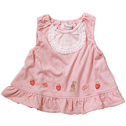 《初夏盛夏対応》(日本製) Pample Mousse(パンプルムース) タック天竺ジャガードいちご&うさぎ&キノコ刺繍タンクトップ 90cm/PK NO.DP-72256
